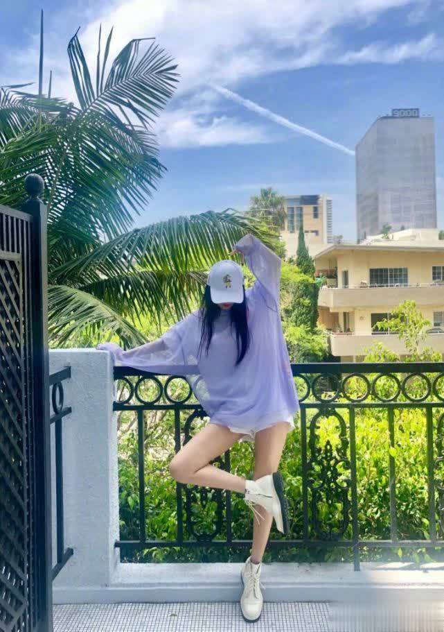 因为她大部分的私服,都是这样的——宽松的长款上衣配超短裤,穿出下衣失踪的效果,秀出一双大长腿。