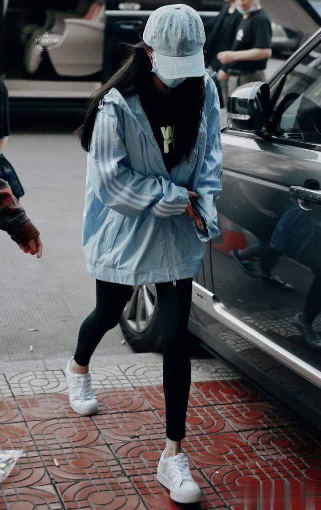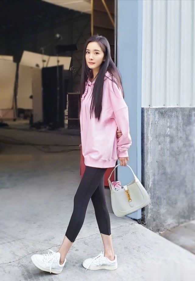 其实除了下衣失踪的穿搭之外,杨幂还有一种穿法就是紧身裤(可以是瑜伽课、骑行裤)搭配运动鞋,最重要的一点,就是露脚踝!露脚踝!露脚踝!