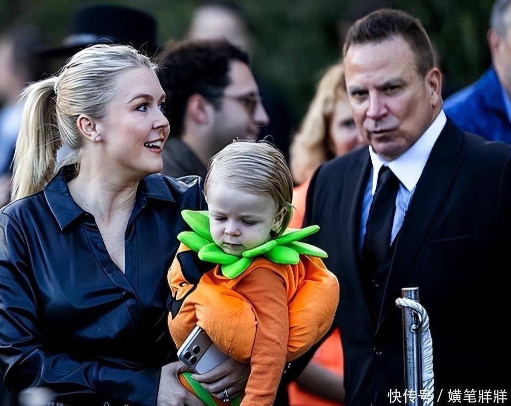 画面中的卡洛琳妆容考究、神情柔和,笑容中透着亲和力;她怀中16个月大的儿子尼科身穿俏皮的南瓜连体衣,粉嫩的小脸与圆润的身形显得格外讨喜。